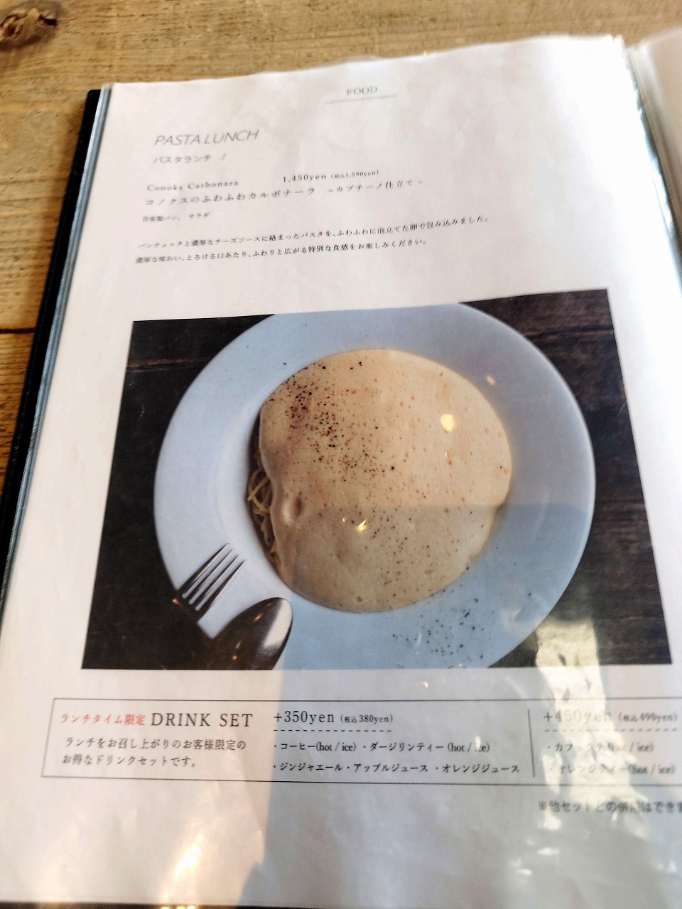 本日の注文は「コノクスのふわふわカルボナーラ」1590円
