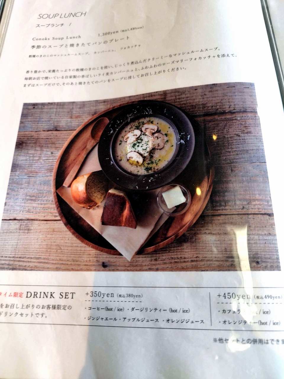 メンバー注文の「季節のスープと焼きたてパンのプレート」1430円です。